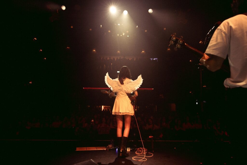 Next up is the main act herself. Matilda Mann took the stage (on time – thank you!) with two of her most anticipated high-energy, light-rock infused songs ‘Autopilot’ and ‘Dazed and Confused’. The sound soared as her band kicked into gear with Mann front and centre. Initially an innocent energy coated her – she was dressed in all white, wrapped in a bow with perfectly placed hair that didn’t lose its curls all night. However, everything quickly became a wonderful oxymoron. From the moment she strummed her guitar her natural effortless stage presence appeared along with a lower, jazzy register and the musical ability of a veteran guitarist. I was hooked, and not knowing whether she was going to break my heart or make me fall in love.